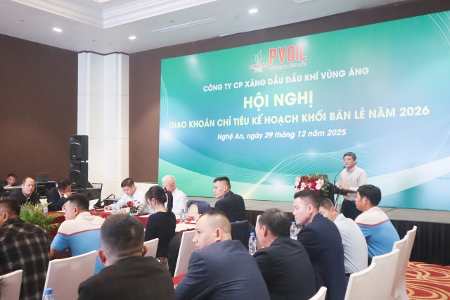 Ngày 29 tháng 12 năm 2025, tại Vinpearl Cửa Hội Resort, đường Bình Minh, phường Cửa Lò, tỉnh Nghệ An, Công ty CP Xăng dầu Dầu khí Vũng Áng đã tổ chức Hội nghị giao khoán chỉ tiêu kế hoạch khối bán lẻ năm 2026, nhằm đánh giá kết quả thực hiện nhiệm vụ năm 2025 và triển khai các chỉ tiêu, giải pháp trọng tâm cho năm 2026.